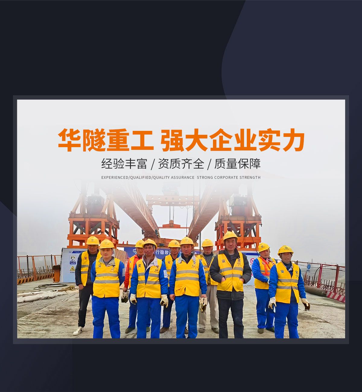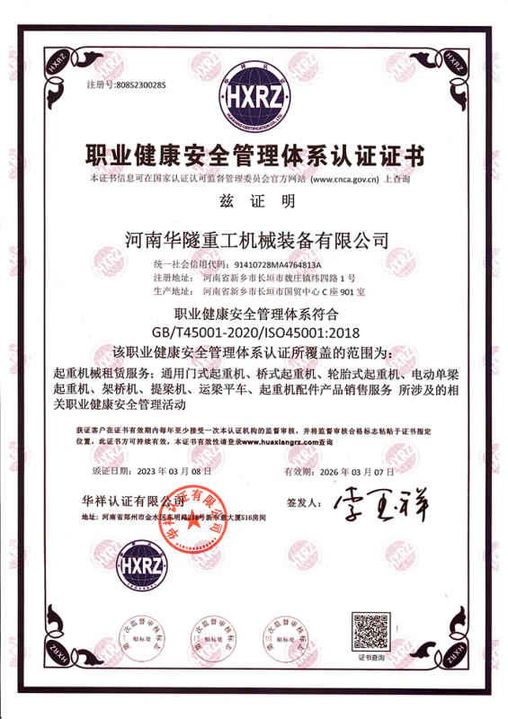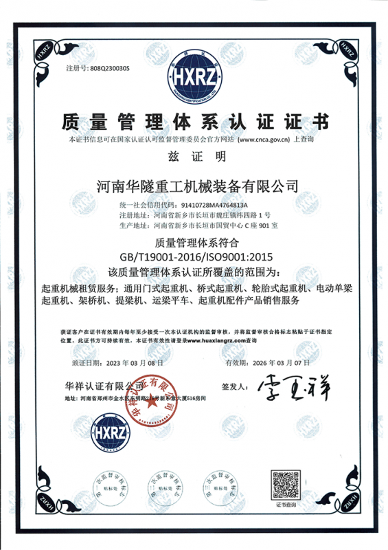 河南華隧重工機(jī)械裝備有限公司主要從事通用門式起重機(jī)、橋式起重機(jī)、電動(dòng)單梁起重機(jī),輪胎式起重機(jī)、架橋機(jī)、提梁機(jī)、遠(yuǎn)梁平車、鋼絲繩電動(dòng)萌蘆、卷?yè)P(yáng)機(jī)、起重配件制造、銷售:起重機(jī)械租賃、安裝和維修,起重設(shè)備園收,機(jī)械設(shè)備維修,鋼結(jié)構(gòu)工程承包,橋梁工程及技術(shù)咨淘服務(wù),銷售五金制品、機(jī)電設(shè)備:建設(shè)工程監(jiān)理,建設(shè)工程設(shè)計(jì),各類工程建設(shè)活動(dòng),建筑勞務(wù)分包,建筑物折除作業(yè),施工作業(yè),工程管理服務(wù),土石方工程施工,裝如發(fā)運(yùn)?! 」疽淹ㄟ^(guò)IS0國(guó)際質(zhì)量、環(huán)境、健康與安全三合一標(biāo)準(zhǔn)認(rèn)證,特種設(shè)備制造許可證和特種設(shè)備安裝改造維修許可證。擁有完熟的質(zhì)量管理體系。嚴(yán)格的管理制度,強(qiáng)大的生產(chǎn)能力和先進(jìn)的檢測(cè)手段,在保證產(chǎn)品質(zhì)量的同時(shí),也具備了極強(qiáng)的市場(chǎng)競(jìng)爭(zhēng)力?! 」緢?jiān)持科技創(chuàng)新為理念,產(chǎn)品質(zhì)量為核心,注重信譽(yù),建立了減信可靠、快捷、思速。便利周到的售后服務(wù)網(wǎng)絡(luò)?! ∥覀儞碛械募夹g(shù)專家和技術(shù)服務(wù)隊(duì)伍為客戶提供充善的售前技術(shù)支持和全天候的售后服務(wù)體系,讓您無(wú)后顧之憂,享受一站式的超值服務(wù)?!  叭A隧重工,伴您成功“是華隧重工永遠(yuǎn)的宗指,真被的希望與各界朋友攜手并進(jìn)。共創(chuàng)輝準(zhǔn)!